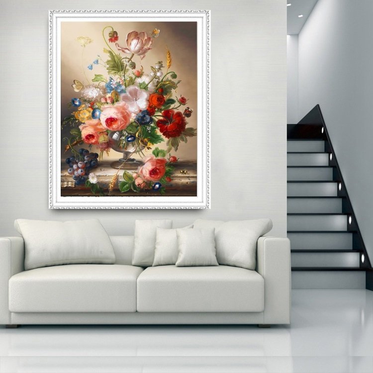 クロスステッチ刺繍キット 手芸キット 初心者向け 図柄印刷 モダン 花 画材居間 DIY刺繍セット 工芸 華やかな花シリーズ インテリア 壁飾り アートパネル 壁絵 [cxy98]
