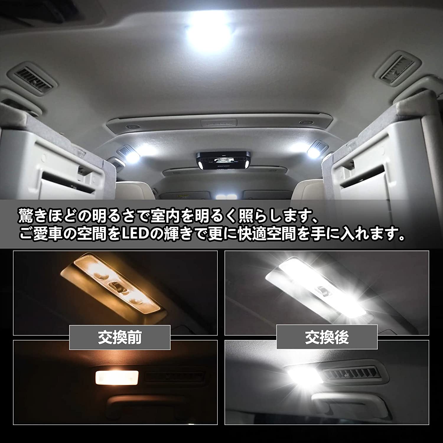 【セット内容】:フロントルームランプ×2、セカンドルームランプ×2、サイドルームランプ×1、バニティランプ×2、カーテシーランプ×2、ラゲッジランプ×2、全11点。