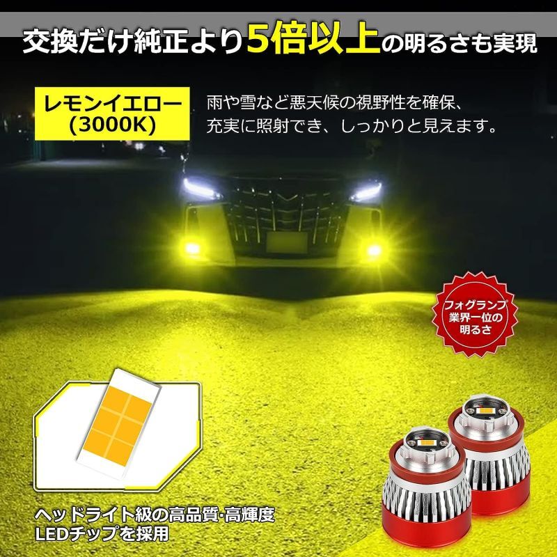 明るい:ヘッドライト級の高品質·高輝度LEDチップを採用で、純正比5倍以上の明るさを実現。
